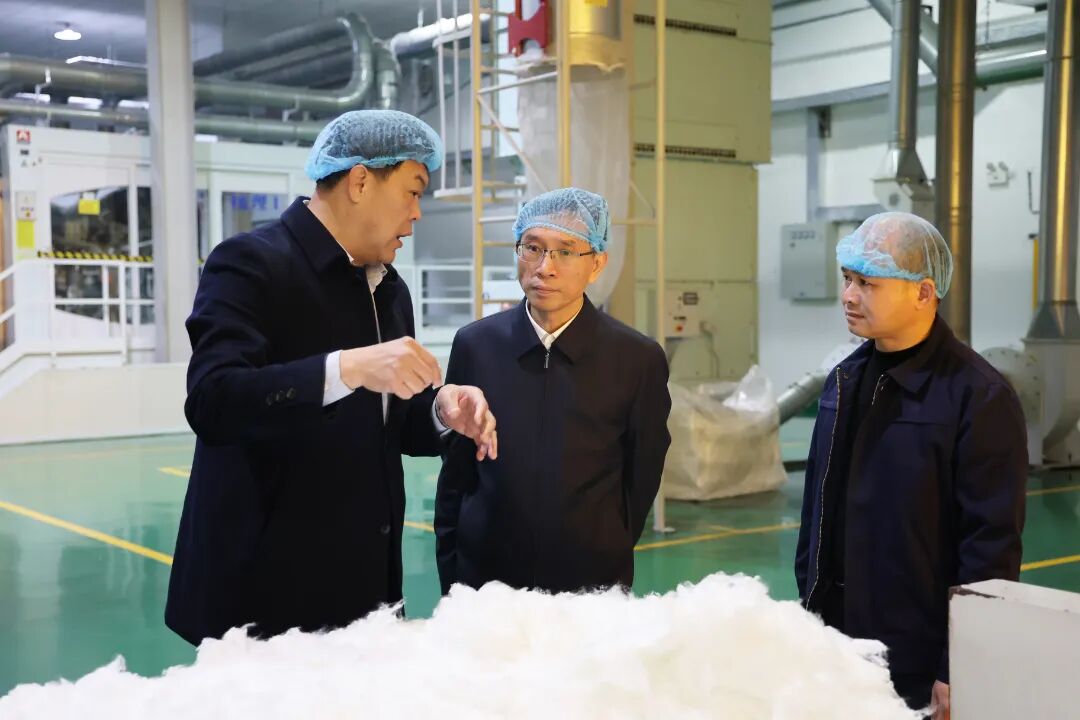 2月3日下午,集團黨委委員、紀委書記、監察專員翁宇航到福能南紡公司開展春節慰問走訪活動,向公司廣大干部職工致以新春祝福,隨后深入車間現場看望慰問一線職工、了解生產運行情況。(詹旺秀 攝)