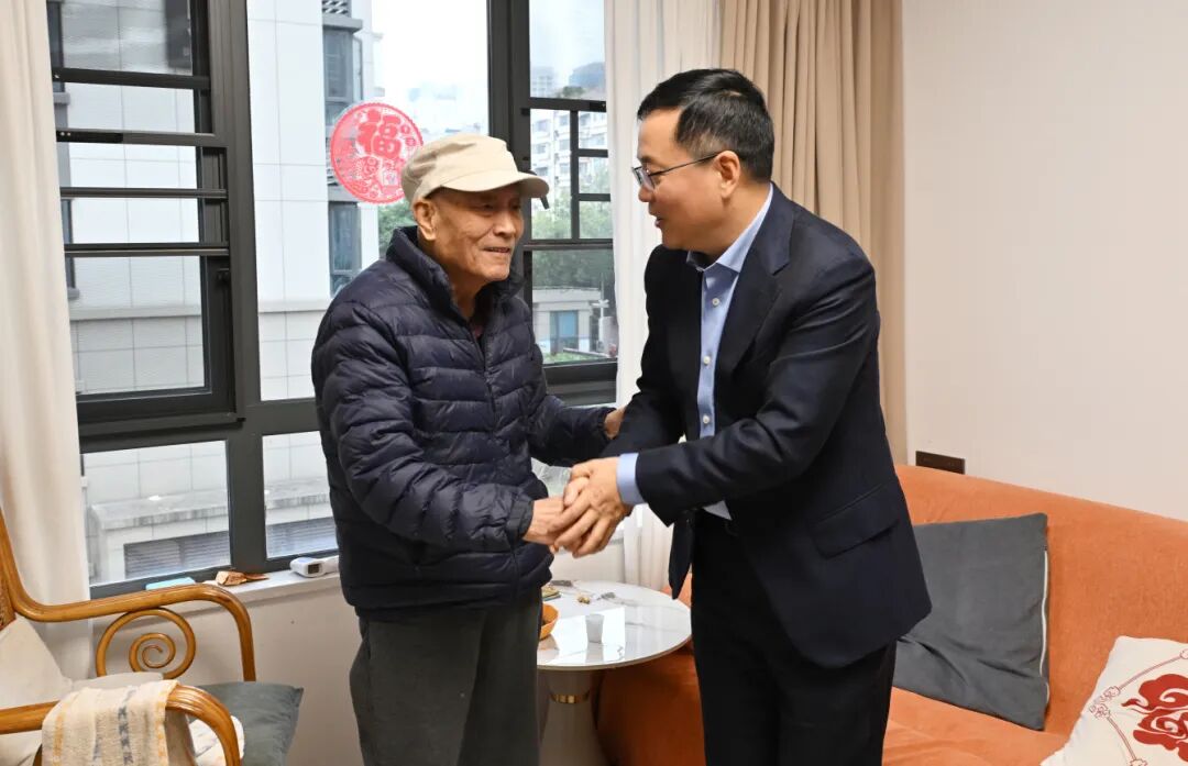 2月6日,集團黨委書記、董事長徐建平走訪慰問了集團離退休老領導郭全忠、岳秉善、周文成、謝榮興。圖為徐建平(右)慰問離休老領導郭全忠(左)。(樂苑 攝)